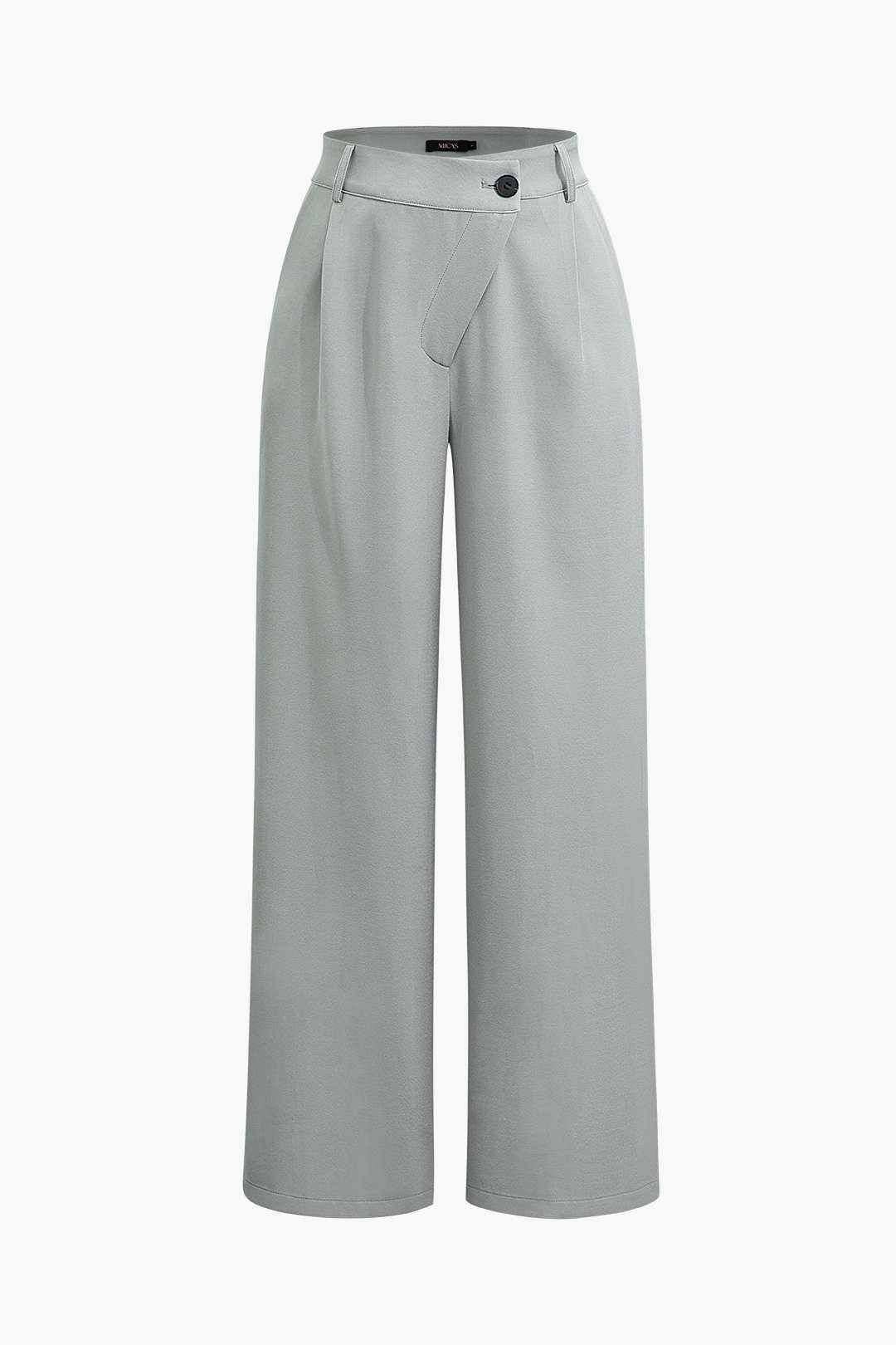 Deze asymmetrische wide-leg broek combineert een verfijnde pasvorm met een moderne twist. De speelse sluiting en wijde pijpen zorgen voor een moeiteloos chique uitstraling, terwijl de zachte en soepele stof comfortabel aanvoelt. Perfect voor zowel zakelijke als casual outfits!