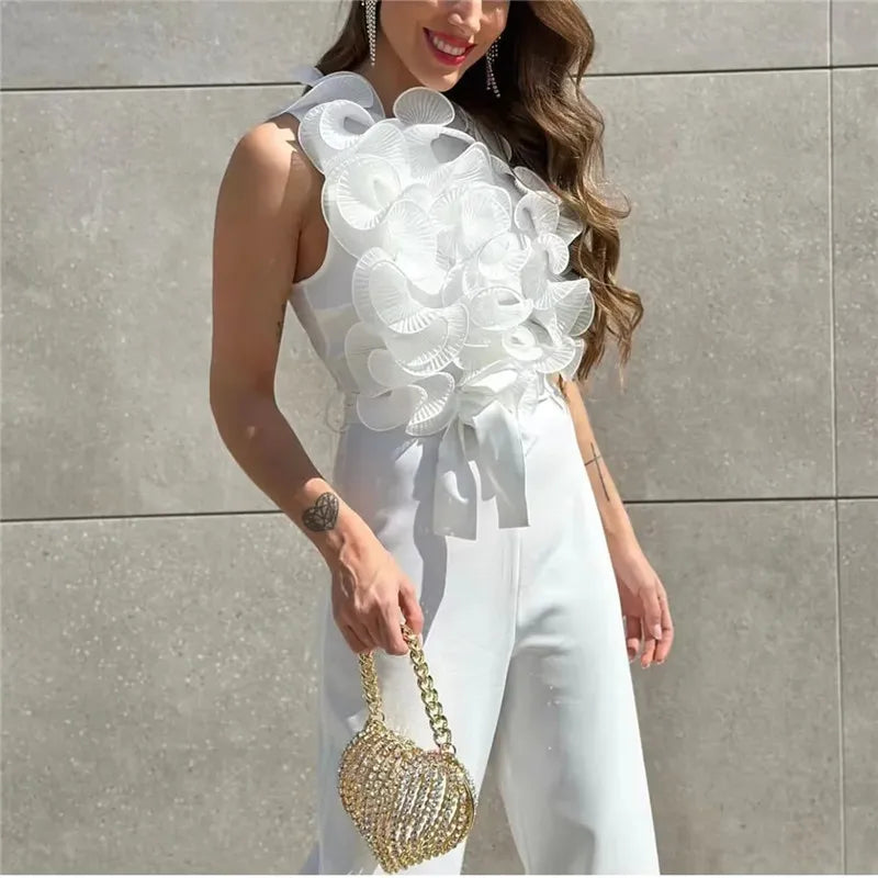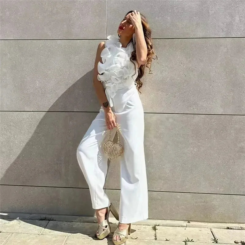 - Ontwerp: Chique jumpsuit met delicate ruches en wijde pijpen voor een verfijnde uitstraling
