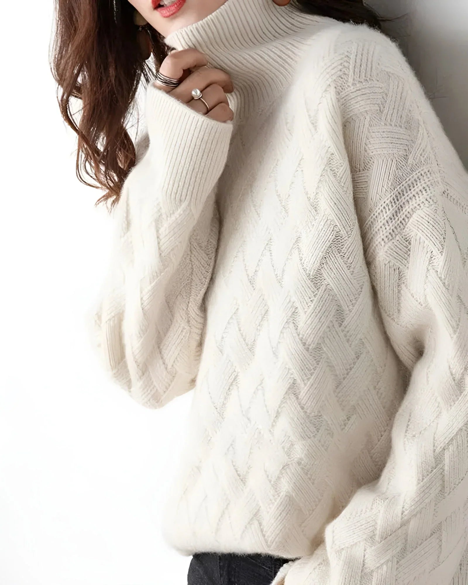Deze gebreide coltrui biedt ultiem comfort en een tijdloze uitstraling. Het zachte materiaal en het subtiele patroon maken het een perfecte keuze voor zowel casual als chique outfits.