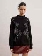 Deze zwarte gebreide trui met geborduurde bloemen biedt comfort én een unieke, artistieke uitstraling. De losse pasvorm en zachte stof maken hem perfect voor casual outfits met een creatieve twist.