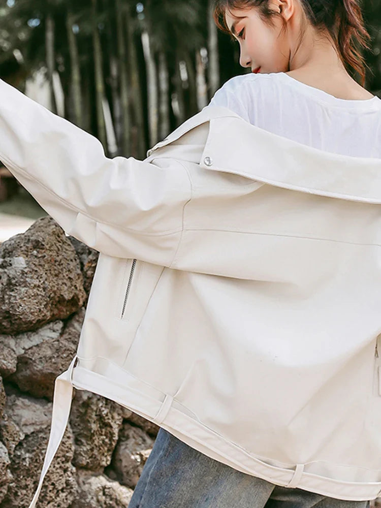 Deze oversized bikerjack in imitatieleer combineert stoer met stijlvol en is een must-have voor elke garderobe. Met de klassieke reverskraag, ritsdetails en een verstelbare tailleband straalt deze jas pure fashion uit.