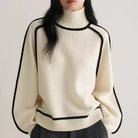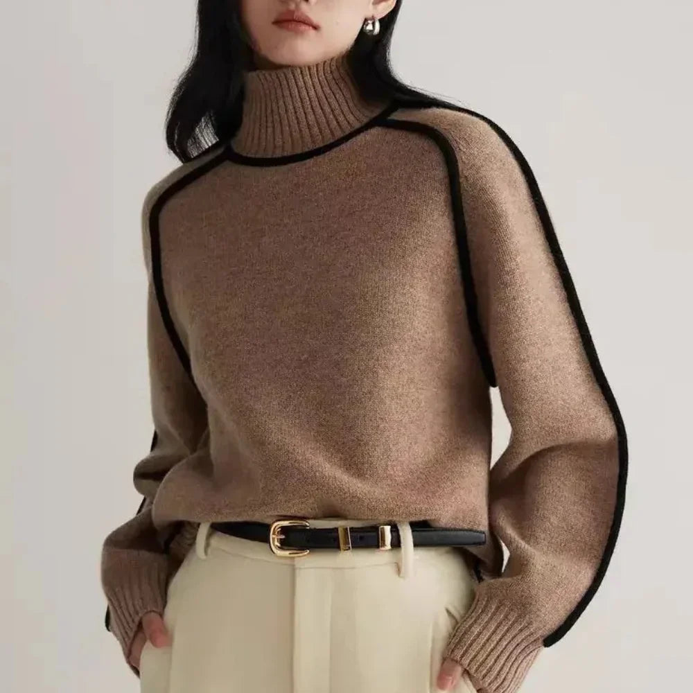 Deze oversized coltrui met contrasterende biesdetails geeft een trendy en verfijnde uitstraling. De zachte, dikke stof en comfortabele pasvorm maken het perfect voor koude dagen.