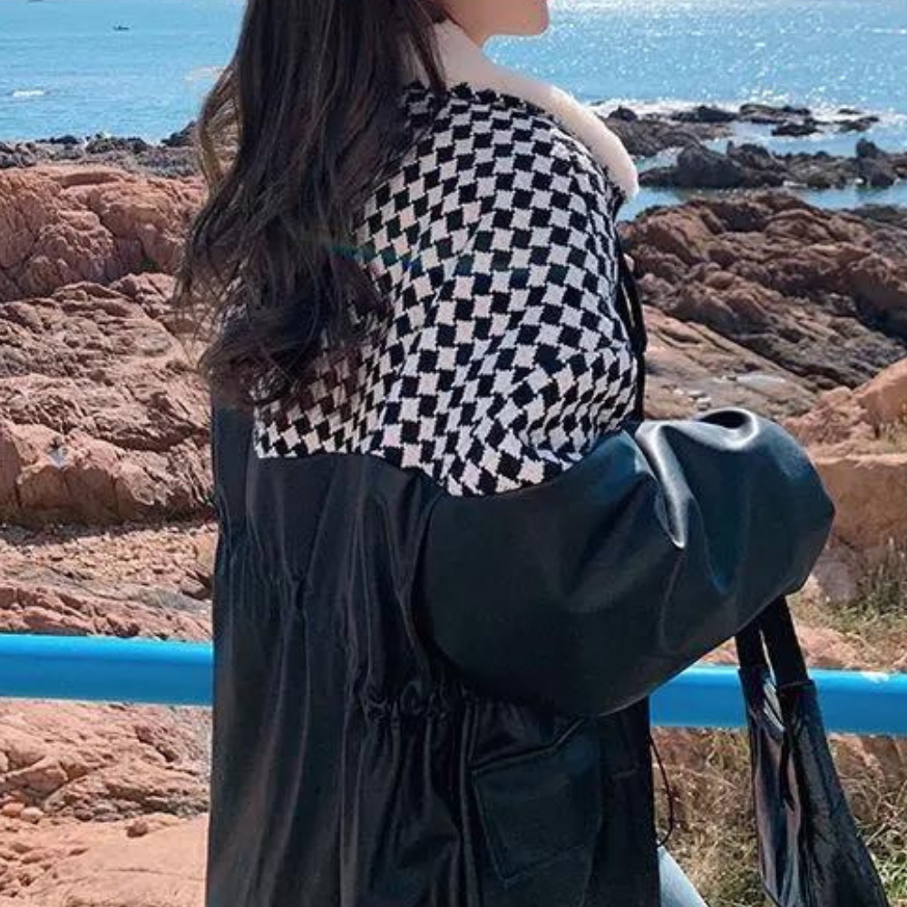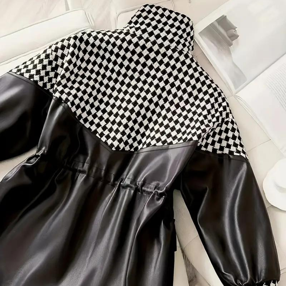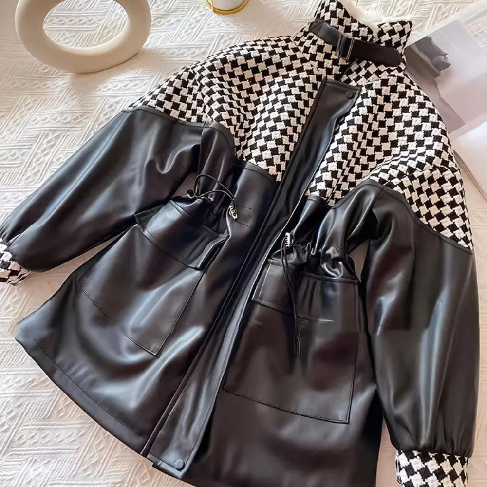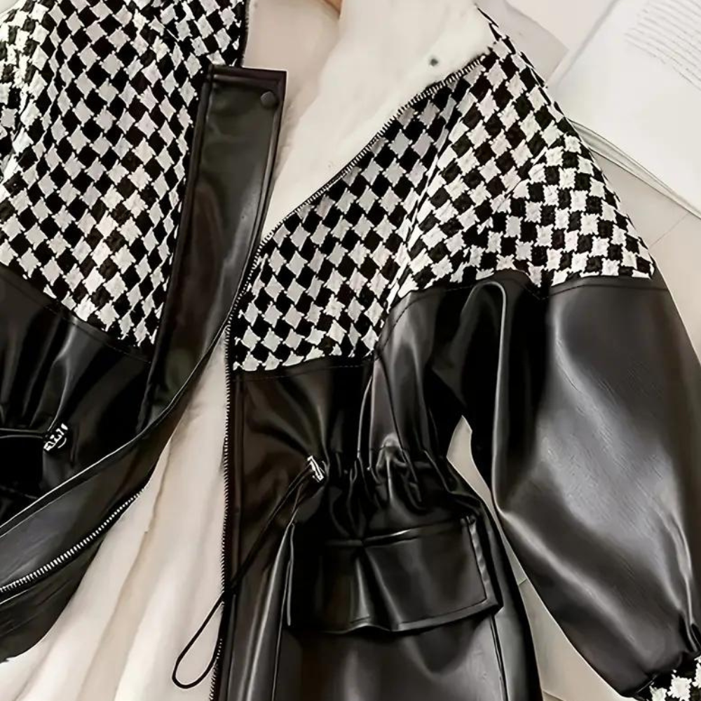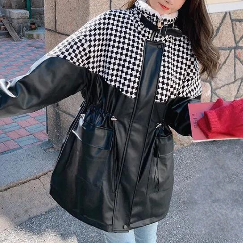 Oversized Winterjas met Ruitpatroon | Faux Leather Details | Warm & Trendy