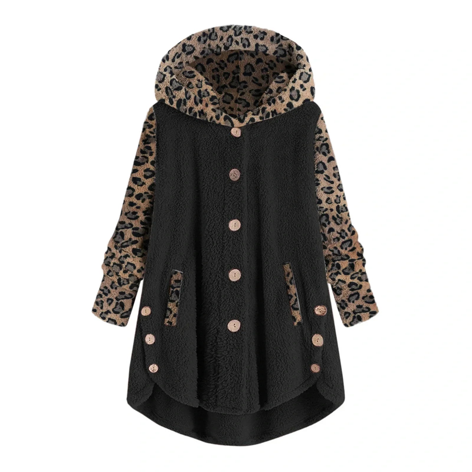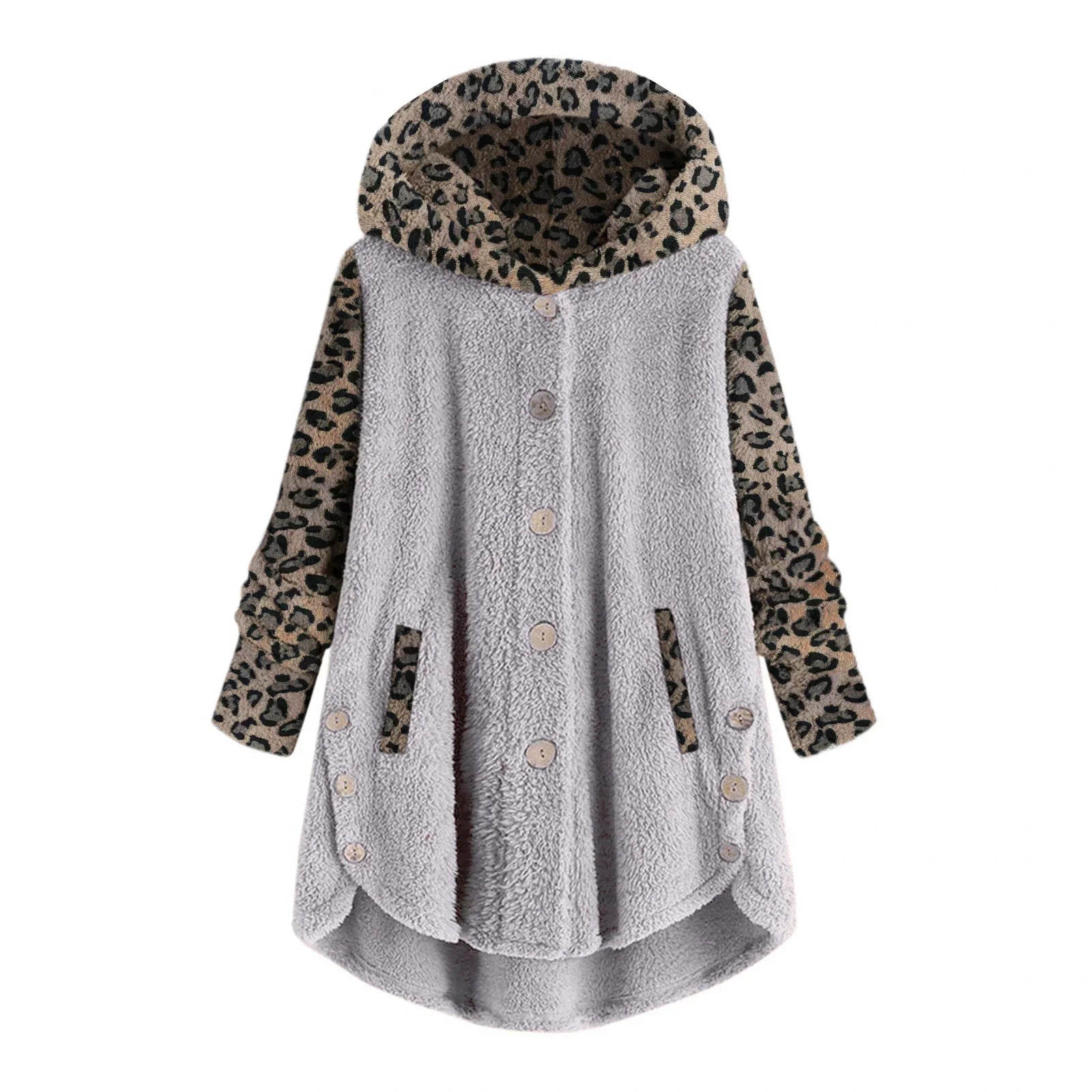 - Trendy Design: Luipaardprint mouwen en capuchon voor een speelse touch.