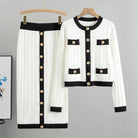 Vintage Gebreide Tweedelige Set voor Dames | Elegant Gouden Knoop Vest en Rok Outfit