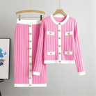 De Vintage Gebreide Tweedelige Set is de perfecte keuze voor een verfijnde look. Deze set bestaat uit een elegant vest met gouden knopen en een bijpassende rok, ontworpen voor een tijdloze stijl die altijd in de mode is. Perfect voor zowel formele als casual gelegenheden, deze set biedt comfort en elegantie in één.